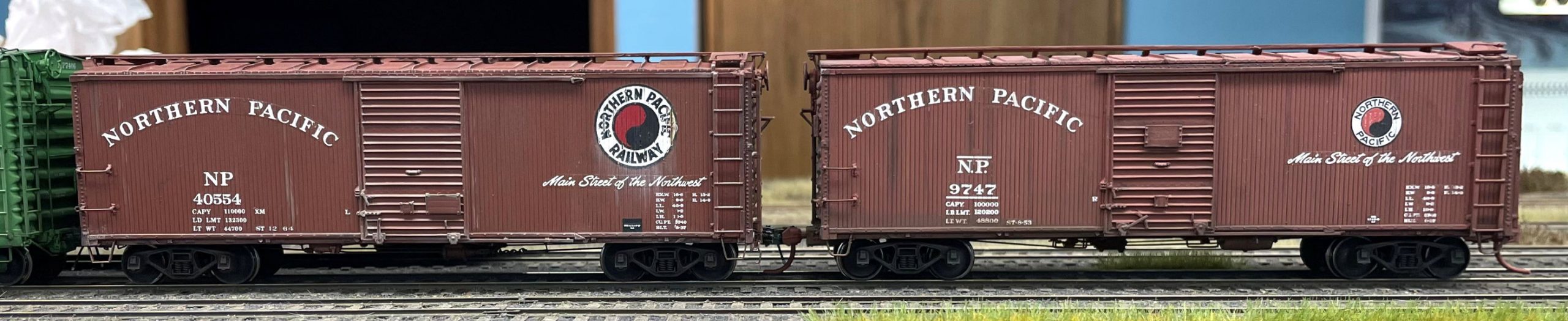 Northern Pacific 40-foot mid-century composite wood-sheathed box car.