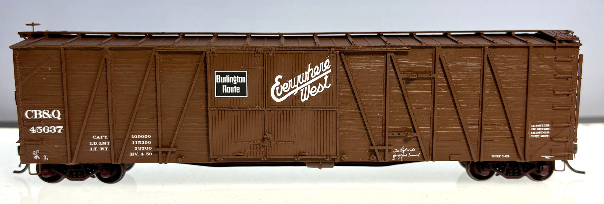 “Some years ago (8 to 10 years), Ted Culotta and Ed Rethwisch collaborated on creating the patterns for a CB&Q XA-9, a single-sheathed auto car. The master patterns were cast, and Ted went to market with a Speedwitch Models kit. That kit has long been out of production.