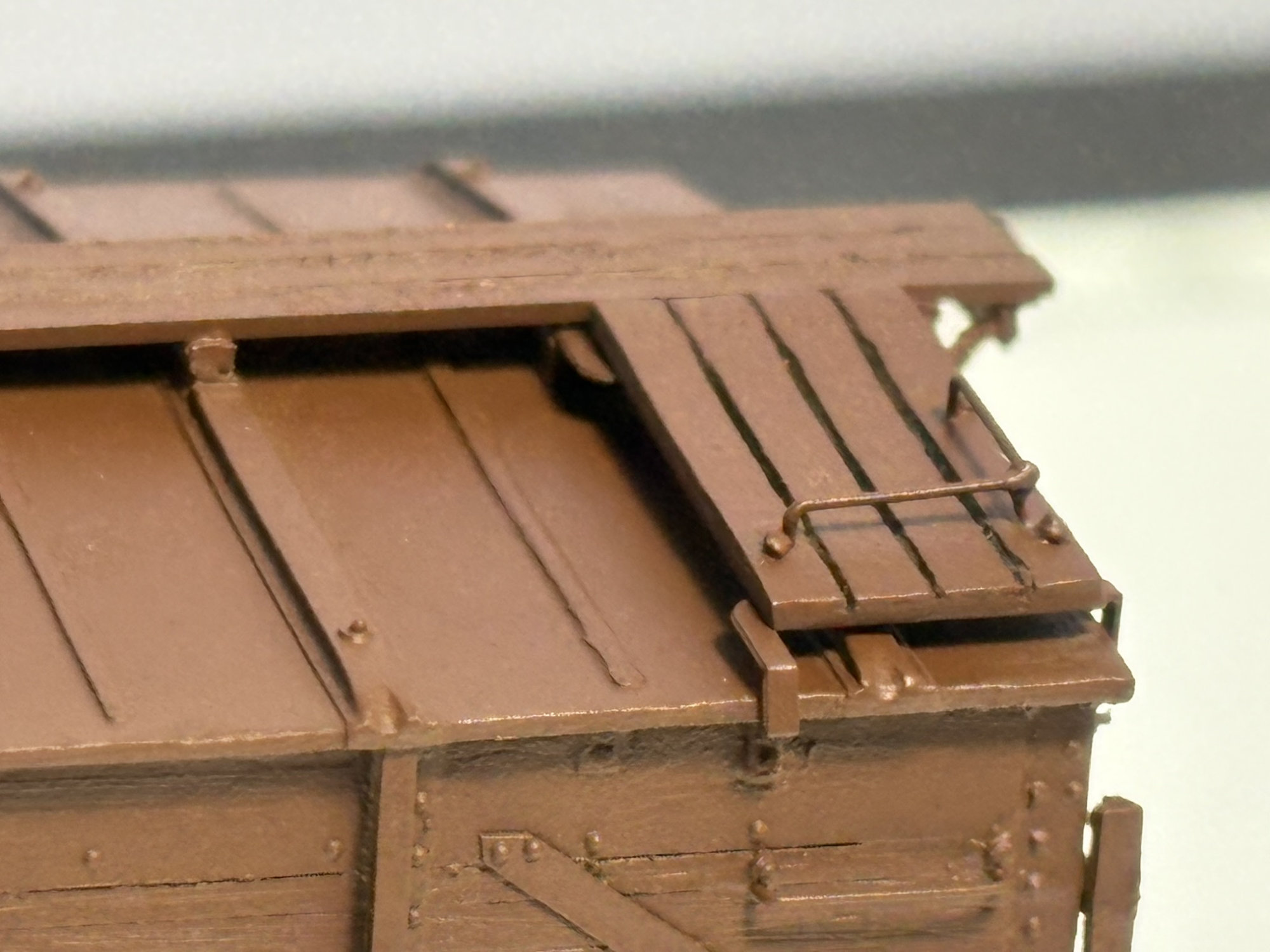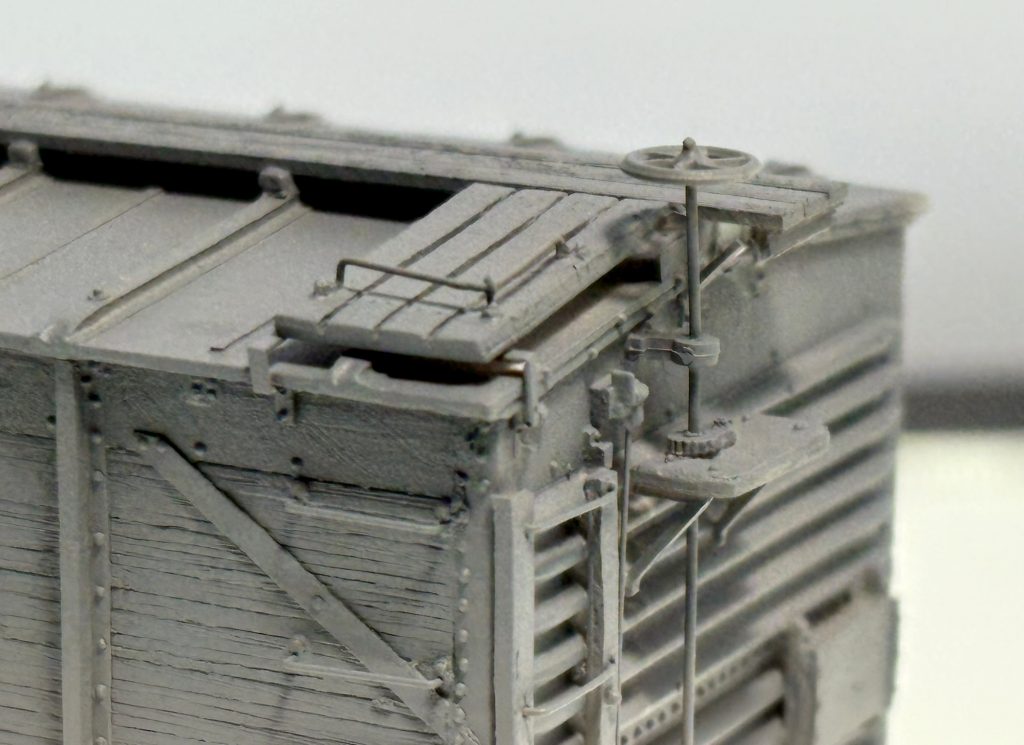 Here’s a closer look at the painted roof detail and the USRA style bracket support for the running board laterals.